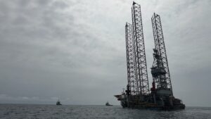 LONDON 25 November 2025. Moving a low-freeboard, slow-tow oil rig through the Gulf of Guinea…